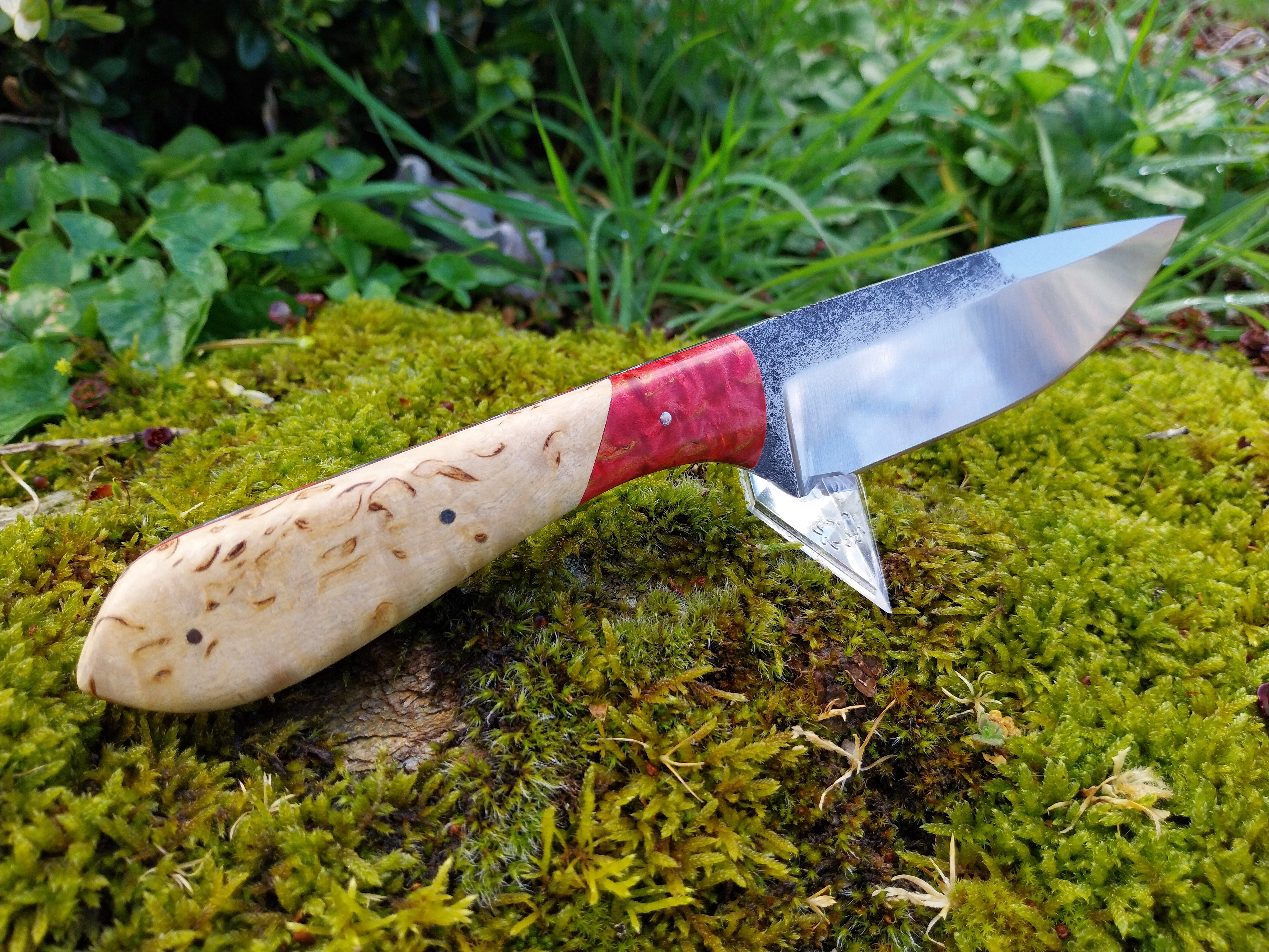 Couteau forgé à la main, offrant un excellent pouvoir de coupe , résistance à l’usure et une facilité d’affûtage.