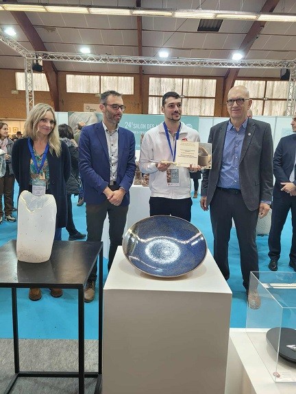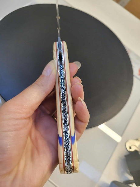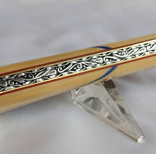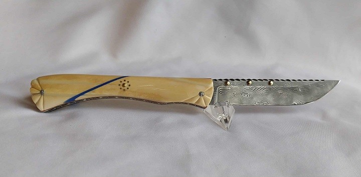 Le manche, réalisé en ivoire de mammouth , se distingue par sa blancheur subtile — un rappel direct de la faïence, magnifié dans la région dès le XVIIIᵉ siècle.